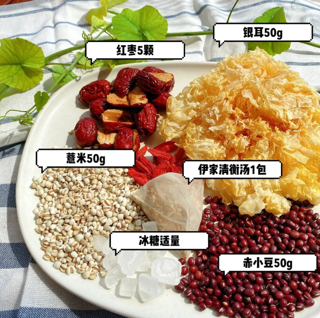 清润滋养小组合:银耳50g;红枣5颗;枸杞10粒