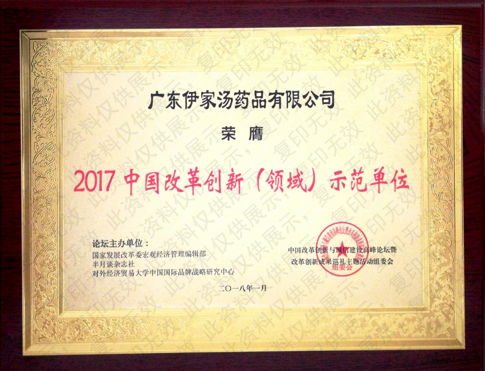 公司获得《2017中国改革创新(领域)示范单位》荣誉