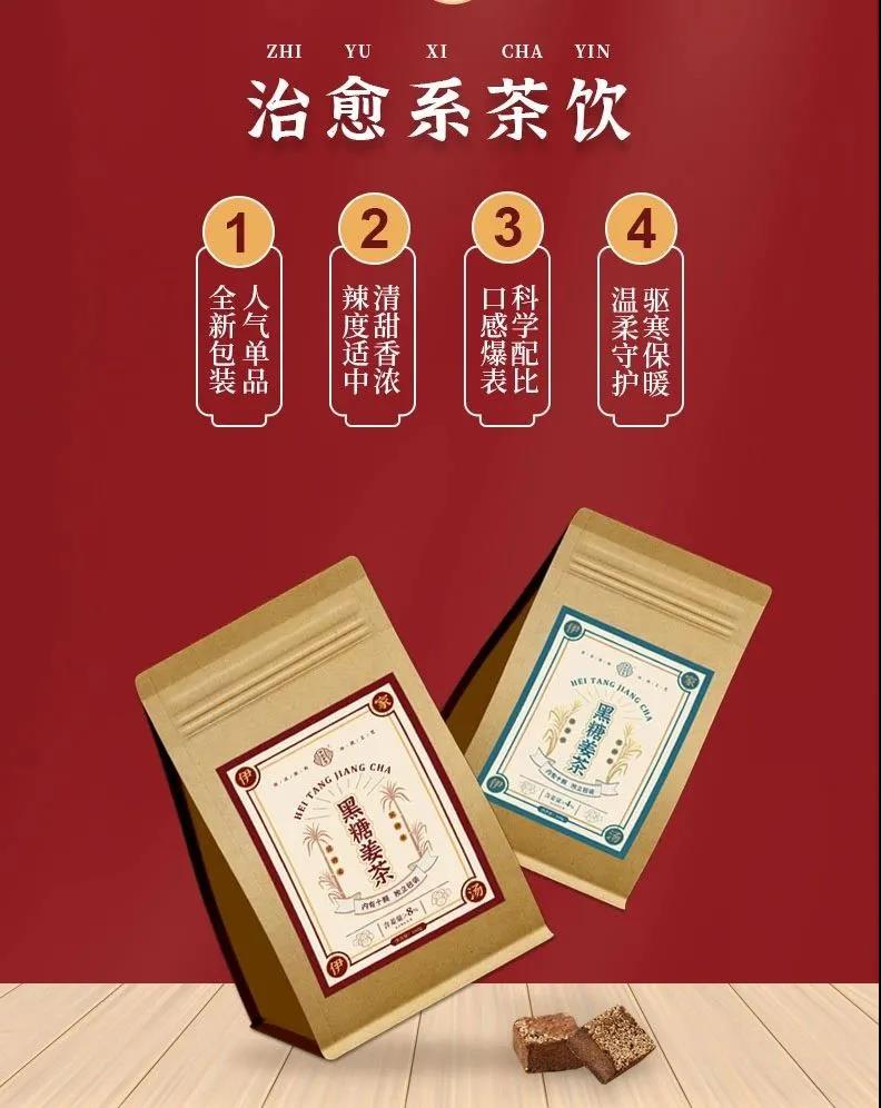 贴合黑糖姜茶采用传统工艺熬制的产品调性;